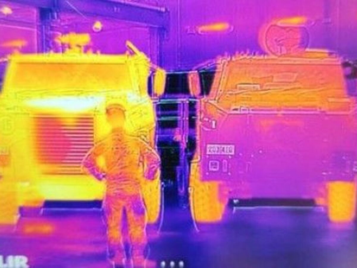 Picture: 3ME Technology/heat signature (left) of Bushmaster alongside Stealthmaster hybrid vehicle