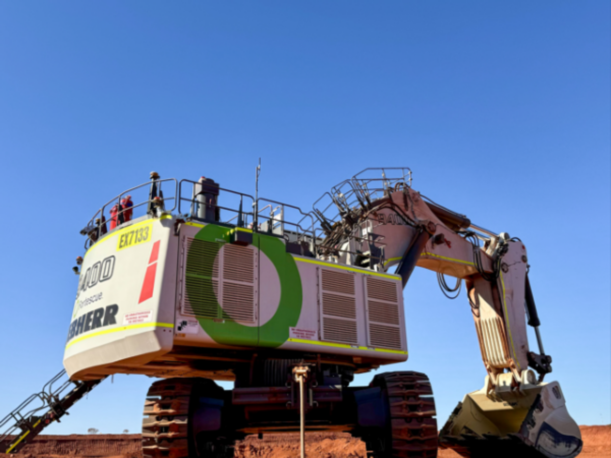 Located at Fortescue’s Chichester operations, the excavator currently operates partially off solar and is powered by a 6.6kV substation and more than two kilometres of high voltage trailing cable.